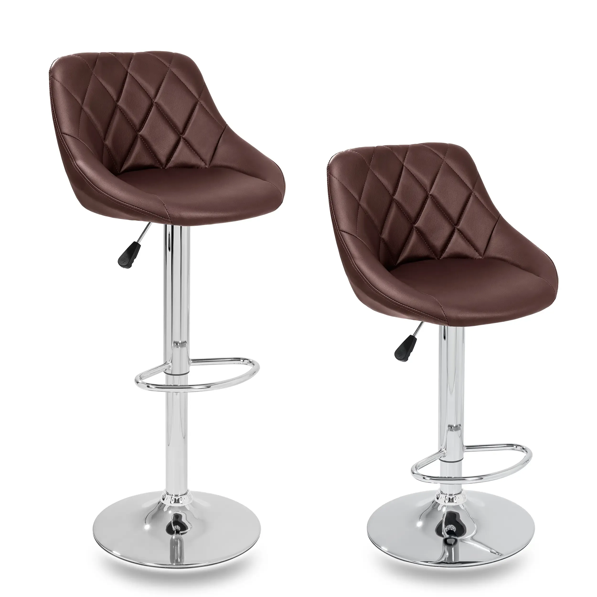 2 Sgabelli da Bar Cucina Sedia in Ecopelle con Schienale Alto, Sgabello Girevole Ed Altezza Regolabile con Poggiapiedi per Casa, Design Elegante Moderno