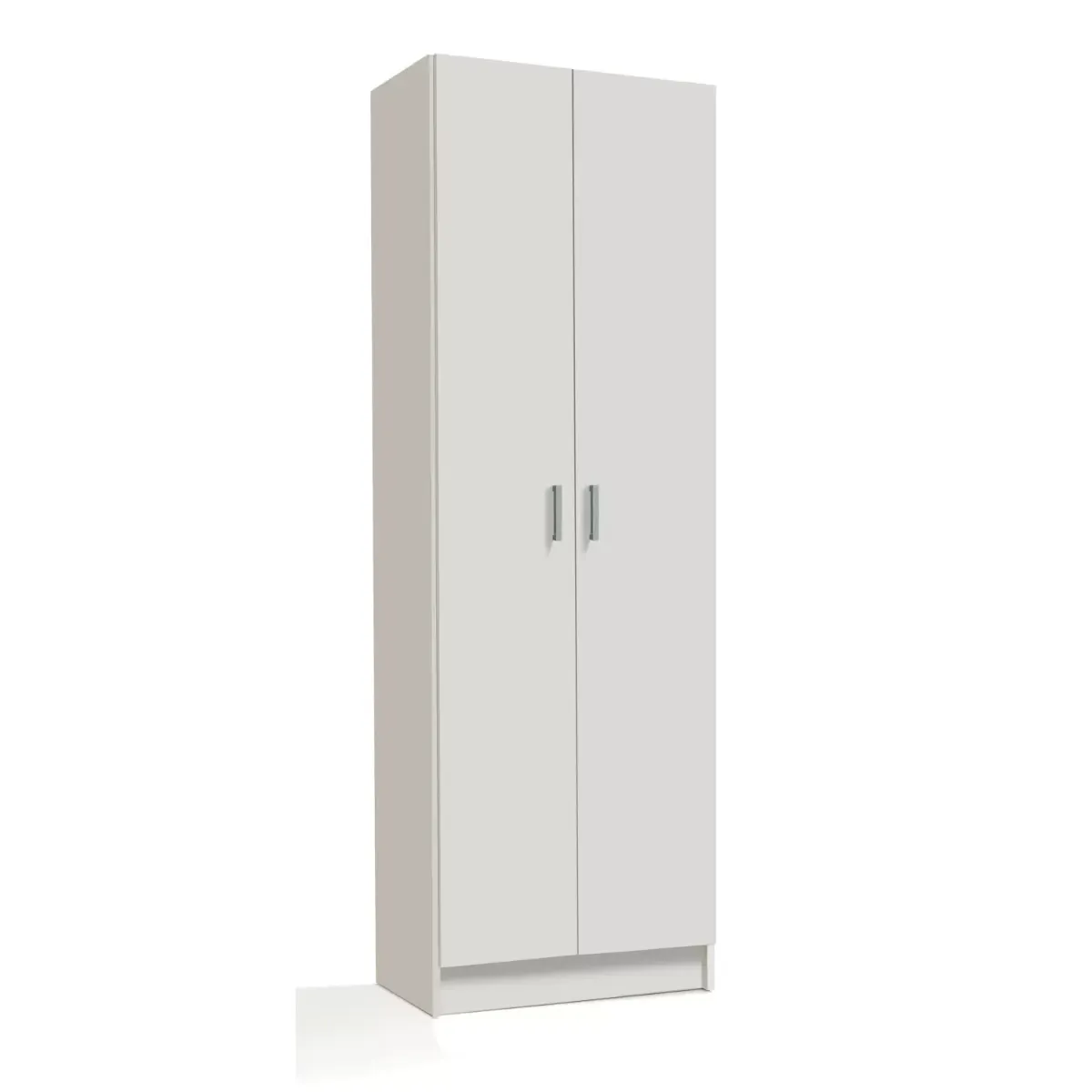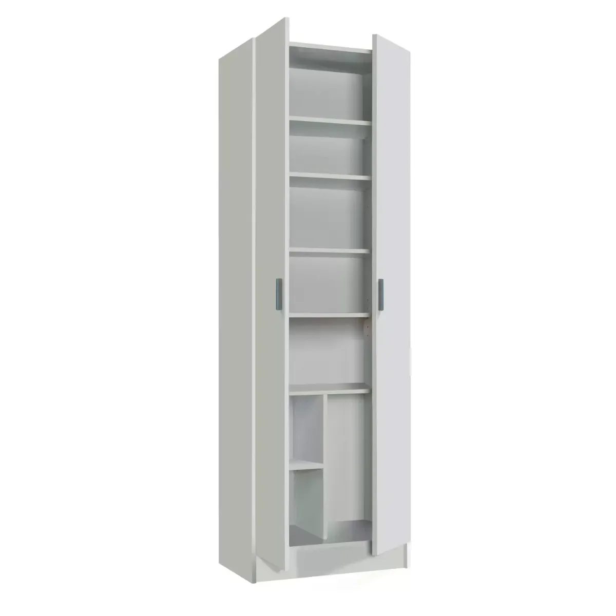 Armadio Armadietto Multiuso A Colonna 2 Ante Battenti E 8 Ripiani Alphabet Salvaspazio Ideale Per Ingresso Camera Da Letto Dispensa Cucina In Legno 59 x 37 x 180 Cm Colore Bianco