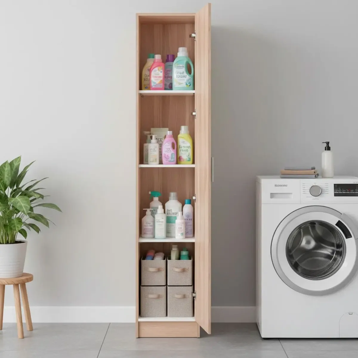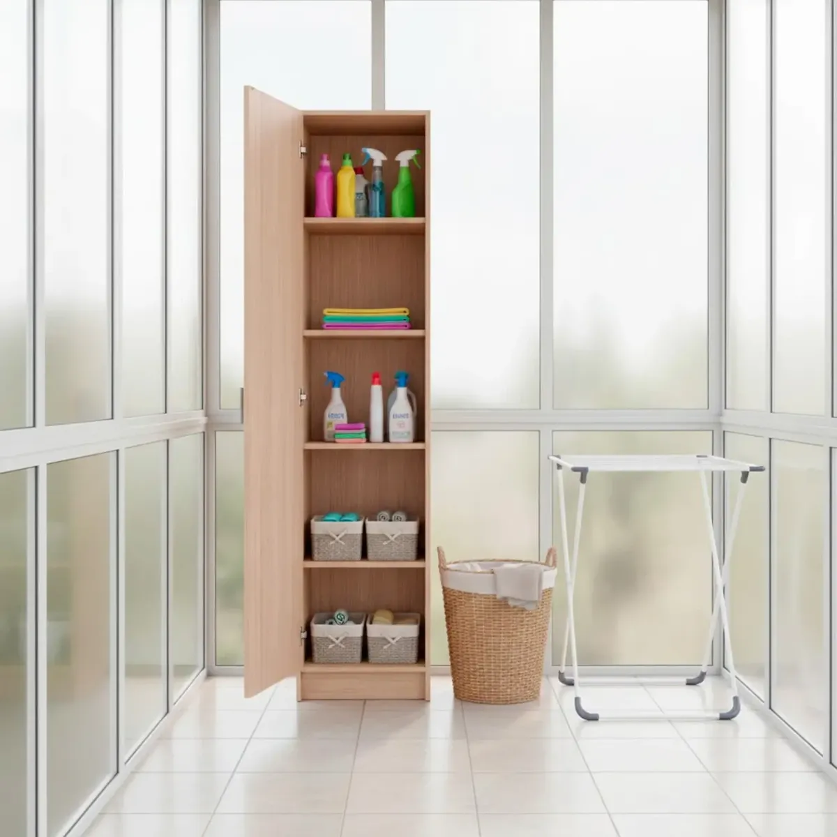 Armadio Con 1 Anta Armadietto Dispensa Mobile Multiuso Salvaspazio Con Ripiani Regolabili Anta Reversibile Ideale Per Cucina Ripostiglio Bagno Terrazzo 37 x 37 x 180 Cm