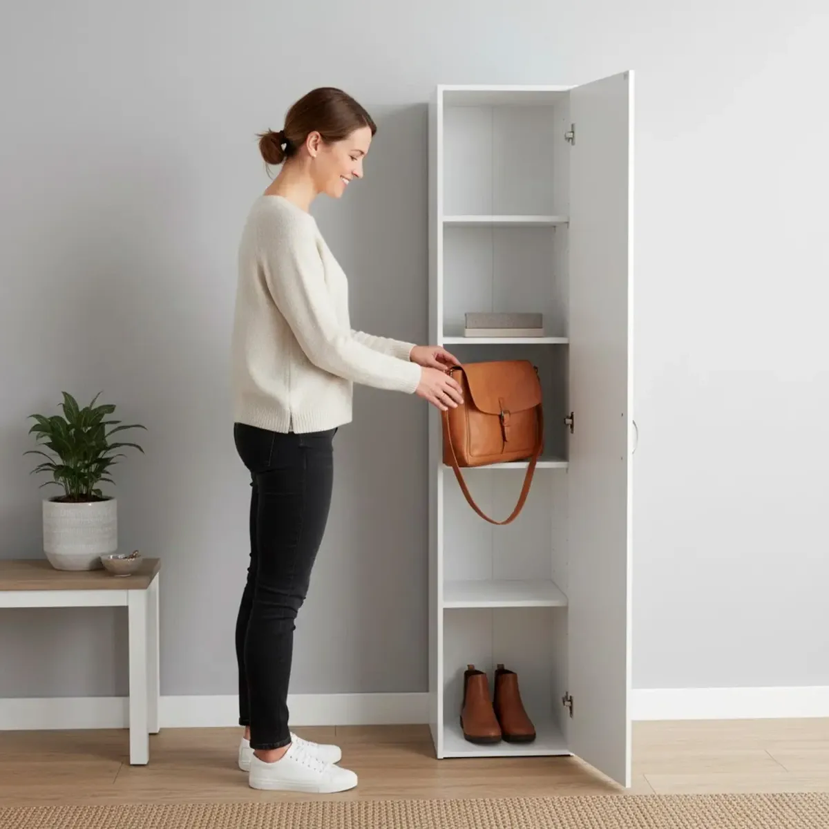 Armadio Con 1 Anta Multiuso Armadietto Design Moderno Salvaspazio Con Ripiani Interni Ideale Per Ingresso Bagno Camera Da Letto Lavanderia 39.4 x 41.5 x 175.4 Cm