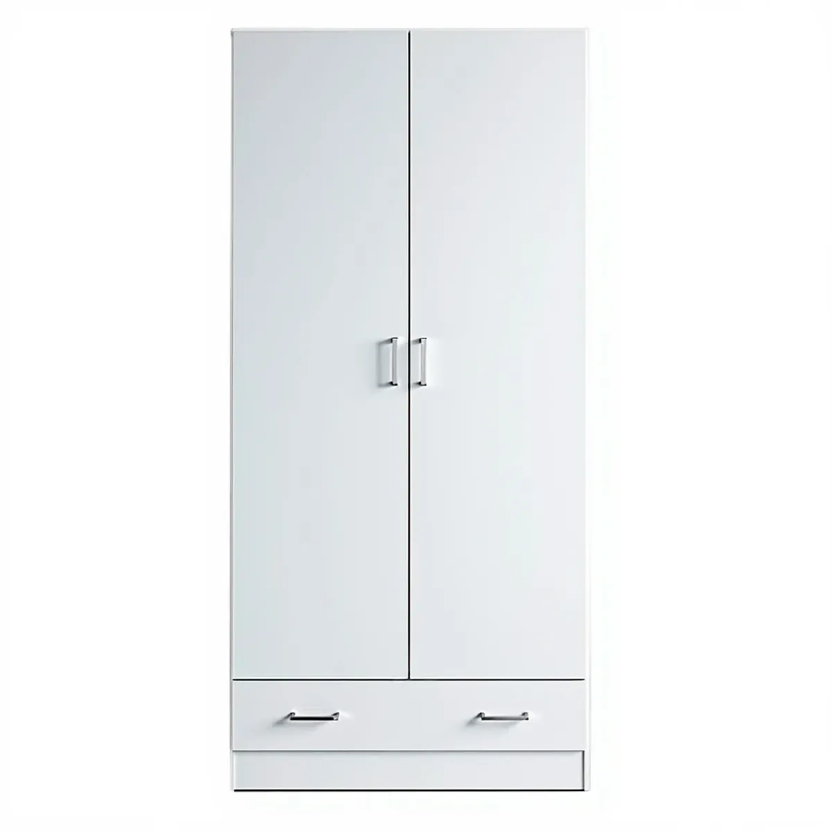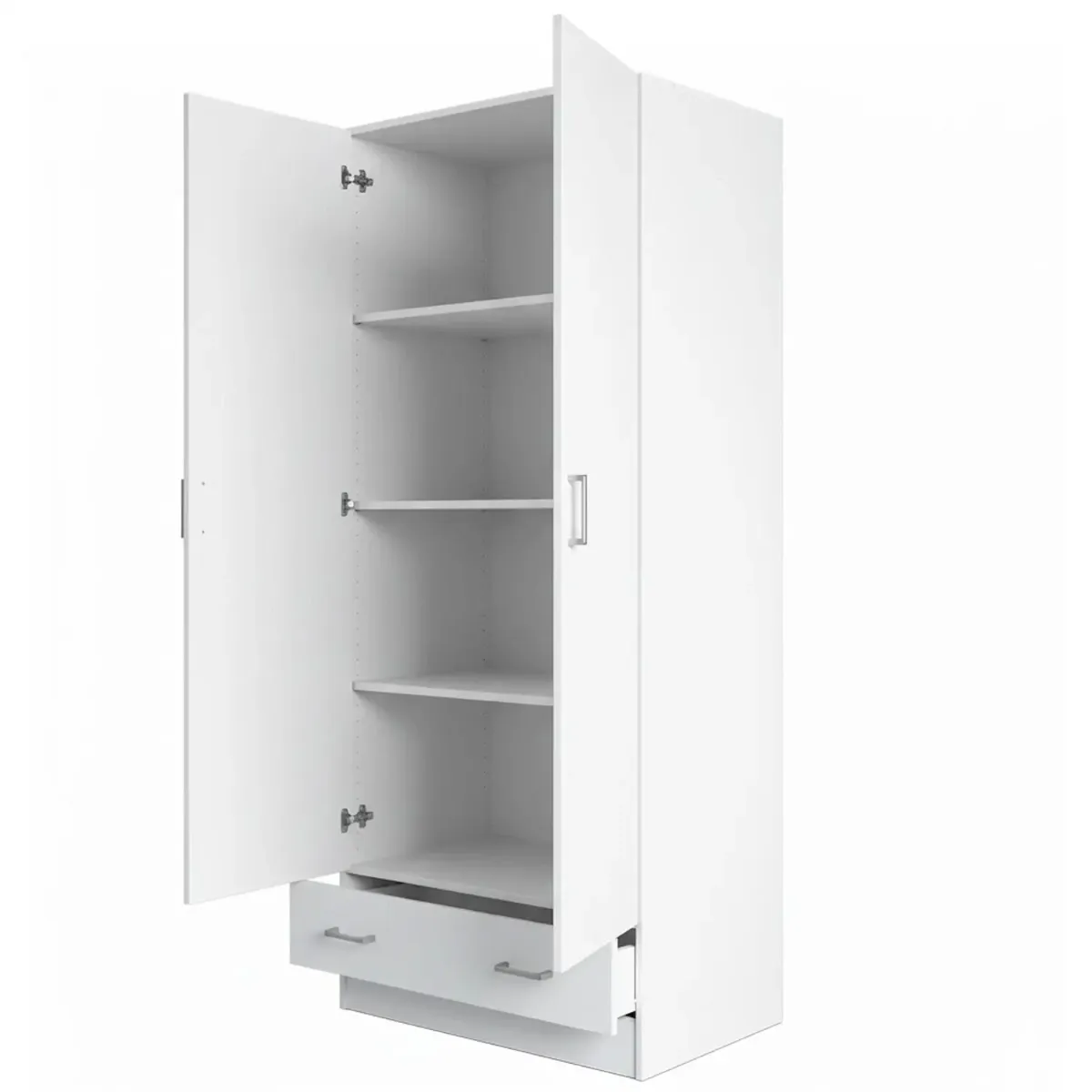 Armadio Con 2 Ante E 1 Cassetto Multiuso Armadietto Design Moderno Salvaspazio Con Ripiani Interni E Vano Contenitore Ideale Per Camera Da Letto o Ingresso 79.4 x 35.7 x 170.4 Cm Bianco