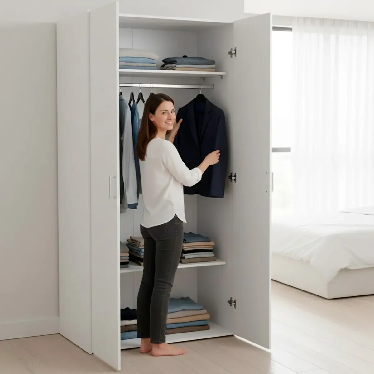 Armadio Multiuso Con 2 Ante Battenti Armadietto Design Moderno Salvaspazio Vano Con Barra Appendiabiti E Ripiani Camera Da Letto Ingresso Lavanderia 77.6 x 49.52 x 175.4 Cm