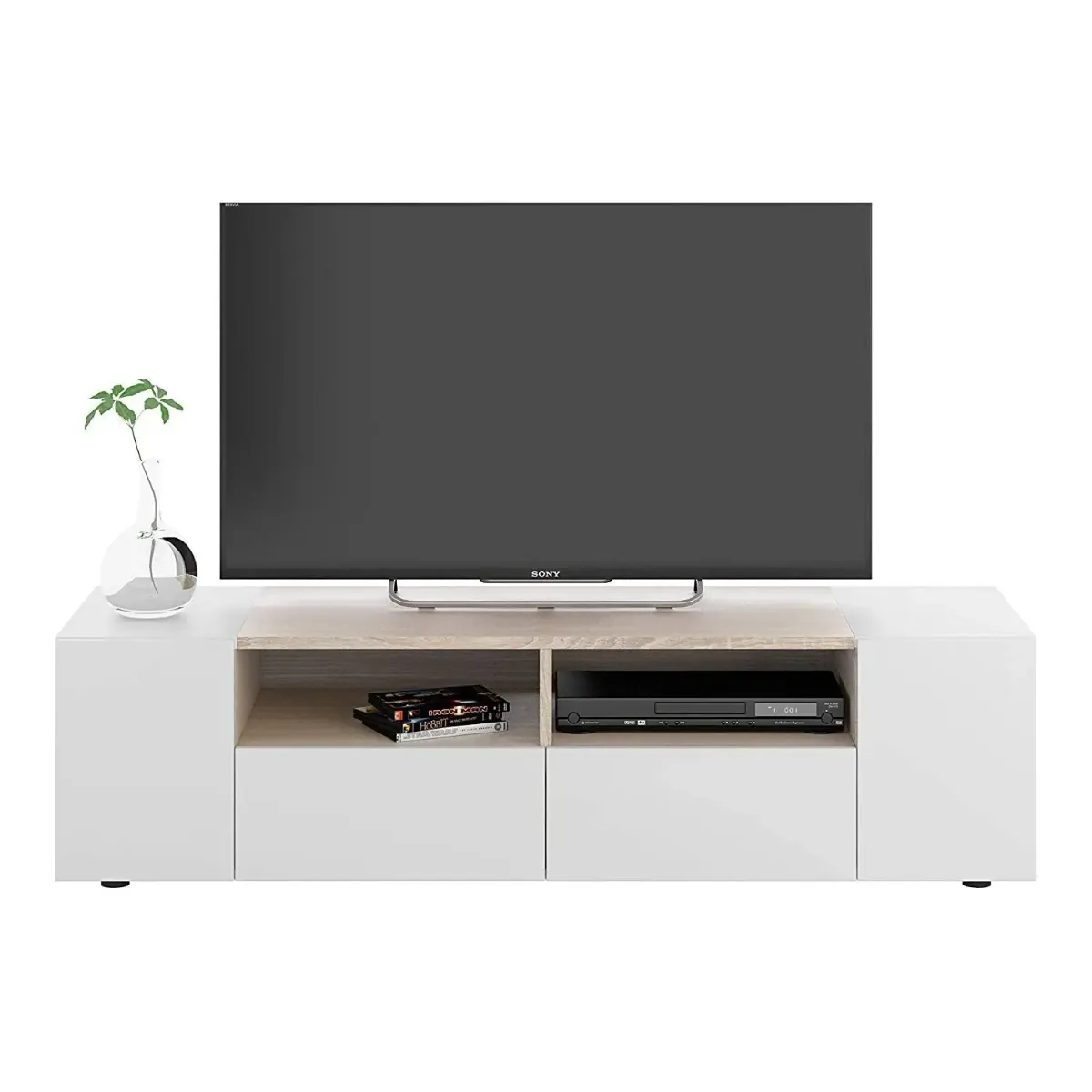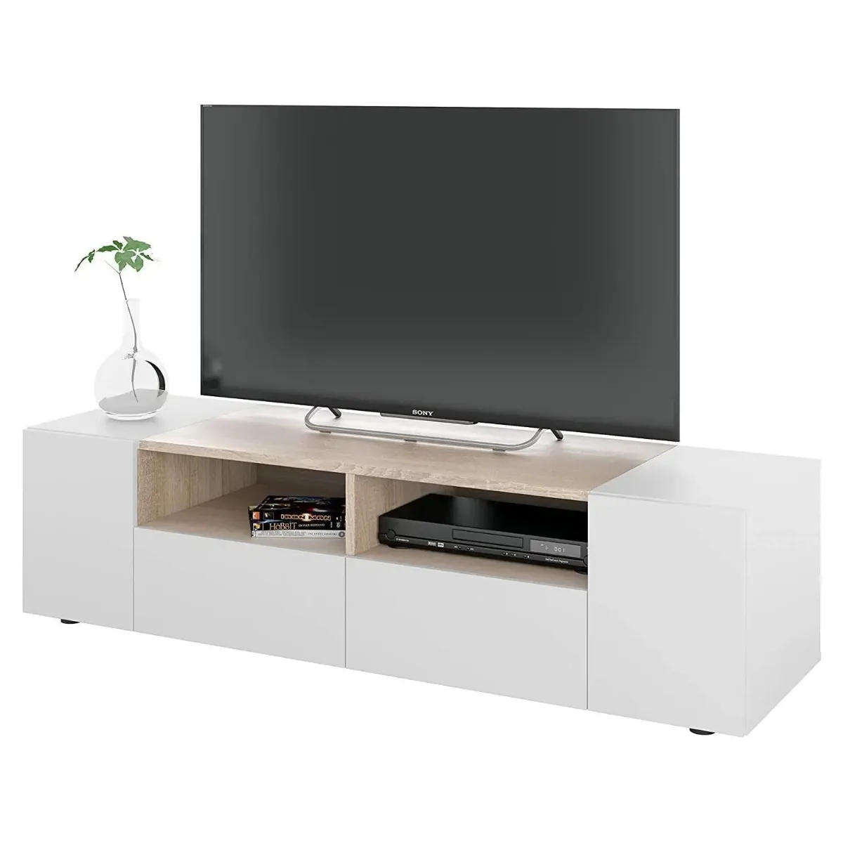 Mobile Porta TV Moderno Con Ante E Vani a Giorno Parete Attrezzata Salvaspazio Per Soggiorno Salotto Cameretta Camera Design Moderno Elegante 138 x 40.2 x 34 Cm