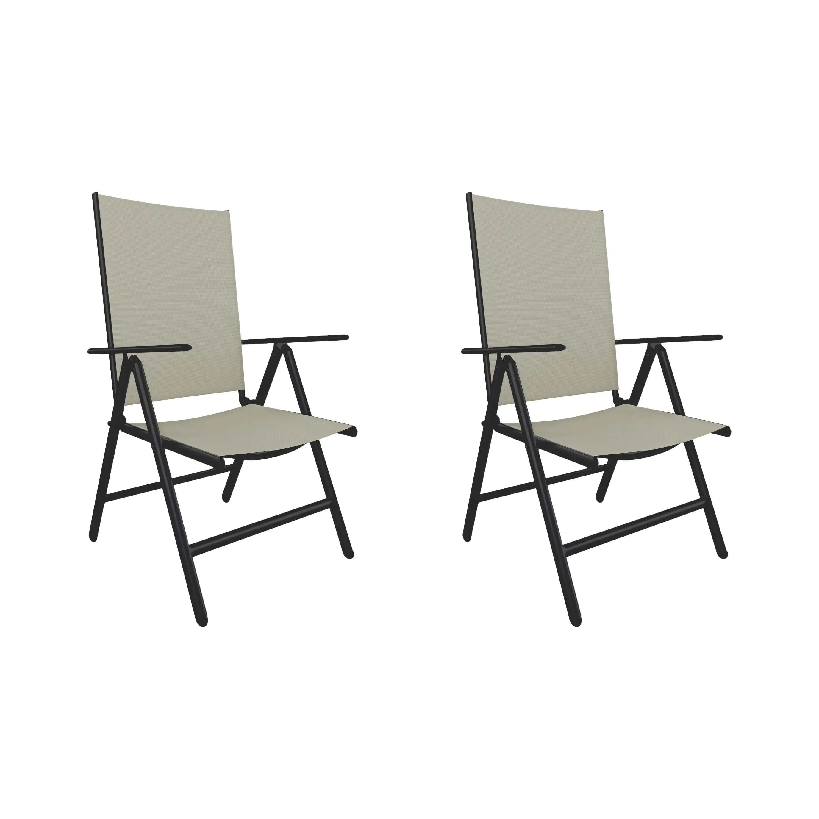 Set di 2 Sedie Da Giardino Pieghevole Multiposizione Regolabile Posizioni Struttura Telaio Alluminio Schienale Braccioli Esterno Terrazzo Balcone Resistente