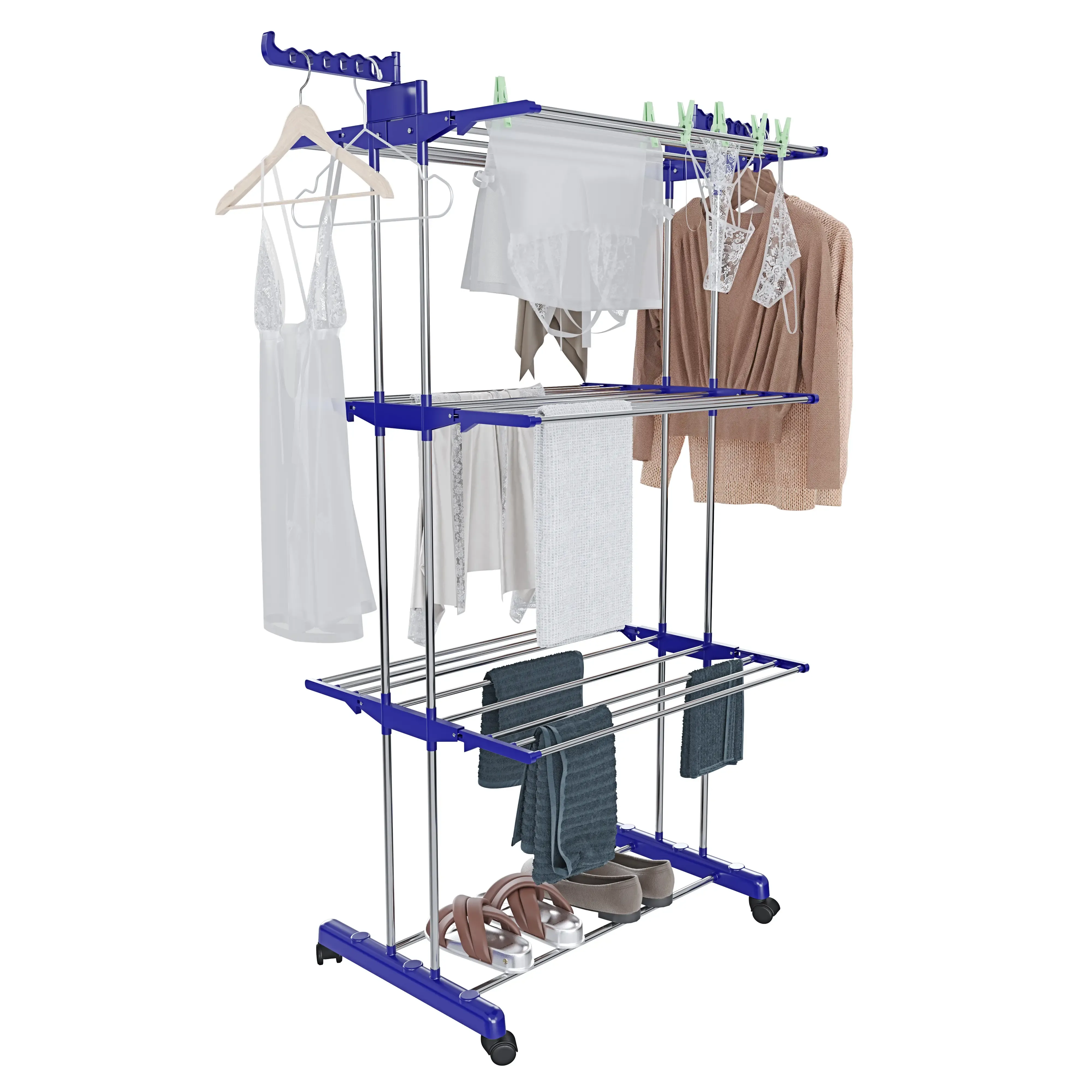 Stendibiancheria A Rotelle Stendino A Torre Verticale In Acciaio E ABS 4 Piani Ripiani Pieghevole Modulabile Salvaspazio Con Ali Richiudibile Biancheria Interno Esterno